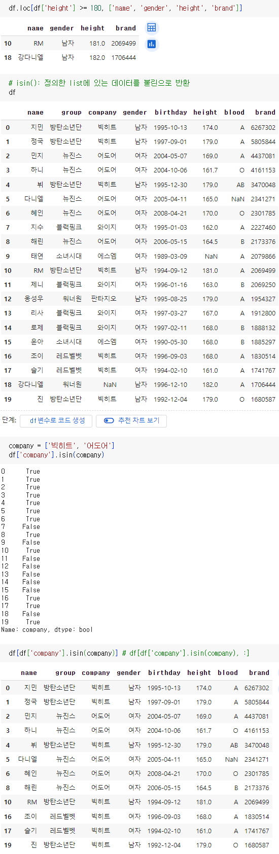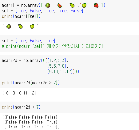 - 불리언값으로 이루어진 배열을 사용하여 조건을 충족하는 원소만 선택하는 방법