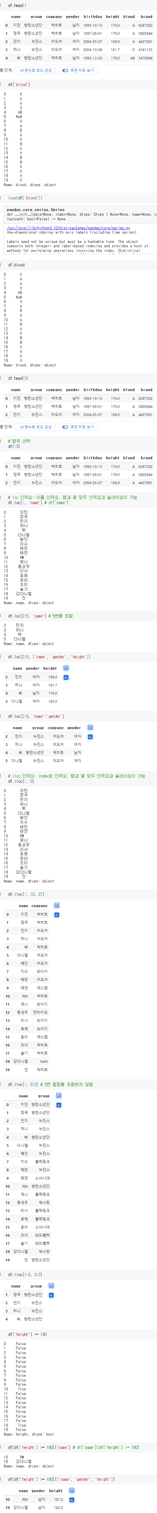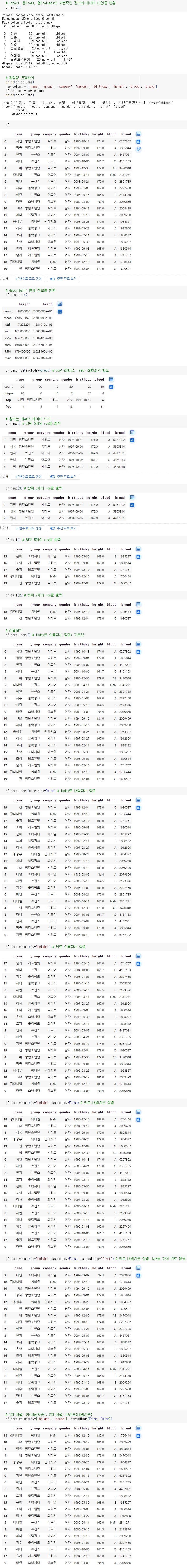 - 데이터프레임은 행과 열로 이루어져 있으며, 각 열은 다양한 데이터 타입을 가질 수 있음