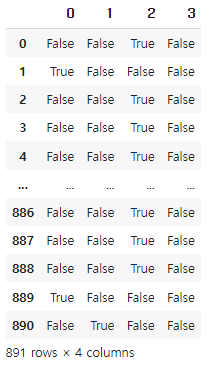 - 독립적인 데이터는 별도의 컬럼으로 분리하고 각각 컬럼에 해당 값에만 1, 나머지는 0값을 갖게 하는 방법