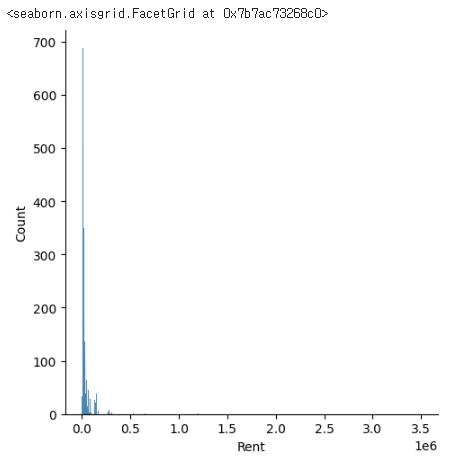 # sns.displot() 를 통해 컬럼에 있는 데이터를 시각화 할 수 있습니다