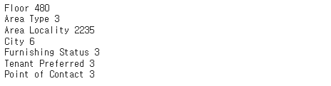 for i in ['Floor', 'Area Type', 'Area Locality', 'City', 'Furnishing Status', 'Tenant Preferred', 'Point of Contact']: