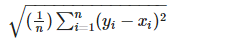 - 예측값과 실제값의 차이에 대한 제곱에 대해 평균을 낸 후 루트를 씌운 값