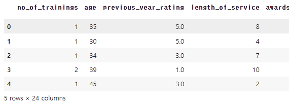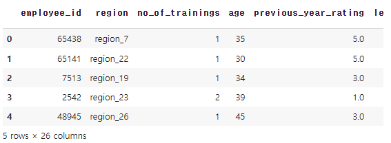 hr_df = pd.get_dummies(hr_df, columns=['department','education','gender','recruitment_channel'])