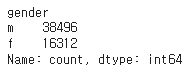 # gender 열에서 각 성별의 직원 수를 세는 데 사용됩니다.