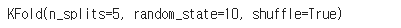 kf = KFold(n_splits=5, random_state=10, shuffle=True)