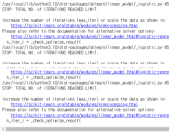 # KFold(n=5)를 사용하여 위 데이터를 LogisticRegression 모델로 학습을 시키고