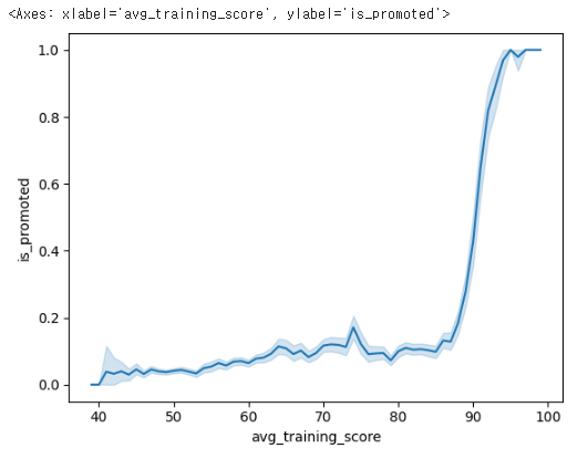 # Seaborn 라이브러리를 사용하여 평균 교육 점수와 승진 여부 사이의 관계를 나타내는 선 그래프를 만듭니다