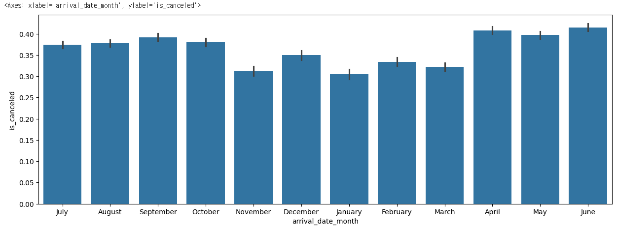 sns.barplot(x=hotel_df['arrival_date_month'], y=hotel_df['is_canceled'], order=months)