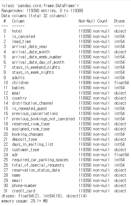 hotel_df = pd.read_csv('/content/drive/MyDrive/KDT/6.머신러닝과 딥러닝/Data/hotel.csv')
