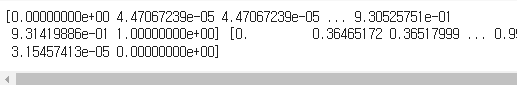 AUC: ROC 커브와 직선 사이의 면적을 의미. 범위는 0.5 ~ 1이며, 값이 클수록 예측의 정확도가 높음