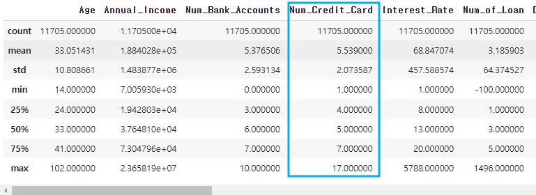 credit_df = credit_df[credit_df['Num_Bank_Accounts'] <= 10]