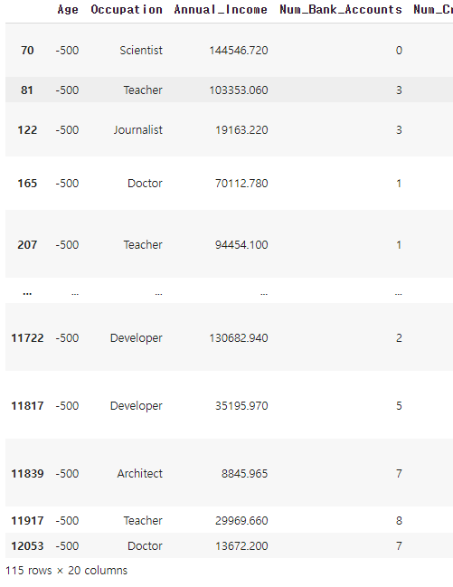 credit_df[credit_df['Age'] > 100].sort_values('Age')