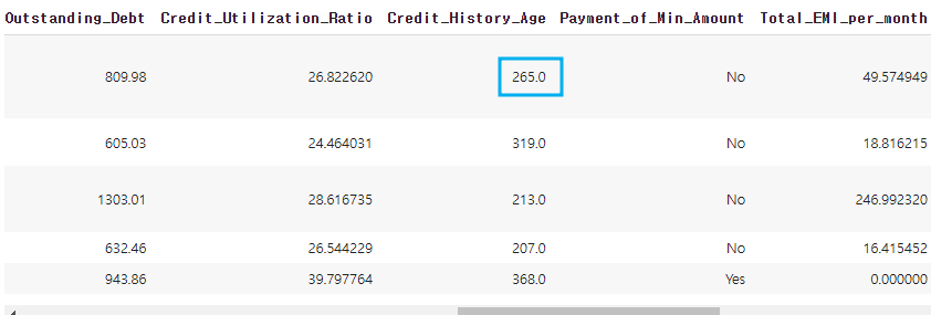 credit_df['Credit_History_Age'] = pd.to_numeric(credit_df['Credit_History_Age'].str.split(' Years and ', expand=True)[0])*12 + pd.to_numeric(credit_df['Credit_History_Age'].str.split(' Years and ', expand=True)[1])