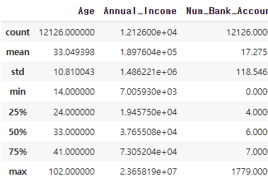 for i in ['Age', 'Annual_Income', 'Num_of_Loan', 'Num_of_Delayed_Payment', 'Outstanding_Debt', 'Amount_invested_monthly']: