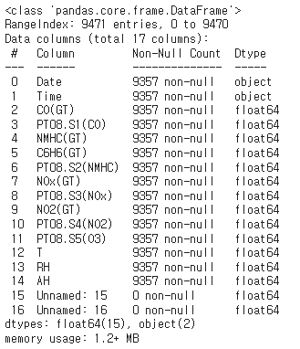 air_df = pd.read_csv('/content/drive/MyDrive/KDT/6.머신러닝과 딥러닝/Data/AirQualityUCI.csv')