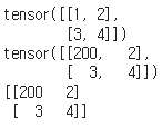 # tensor1에 결과를 다시 저장, 모든 사칙연산자에 _를 붙이면 inplace가 됨