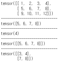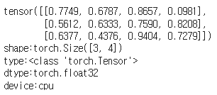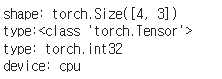 - 파이토치는 텐서를 사용하여 모델의 입력과 출력, 모델의 매개변수들을 처리 사용됨