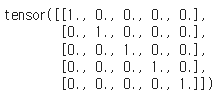 # 입력한 숫자(5) * 입력한 숫자(5) 의 행렬을 만들어 0으로 채우고 행의 순서의 위치에만 1을 채움