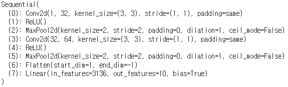# 이제 구성된 CNN 모델을 활용하여 MNIST 데이터셋을 학습시키려 합니다.