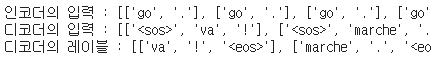 - 학습시 교사강요 기법을 사용하여 학습되므로 학습 과정에서는 디코더는 정답 문장에 해당하는 문장 행렬을 한번에 입력