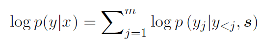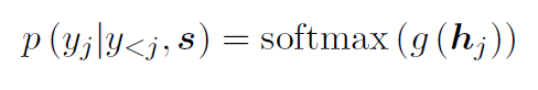 단어 yj를 디코딩하는 확률은 다음과 같이 매개변수화할 수 있습니다: