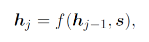 여기서 g는 어휘 크기의 벡터를 출력하는 변환 함수입니다. hj는 추상적으로 다음과 같이 계산된 RNN 히든 유닛입니다:
