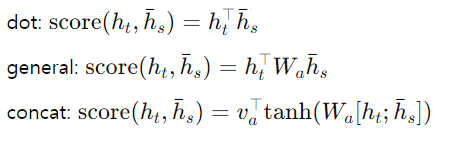 - 정렬 함수: 위치 기반(location), 내적(dot), 일반(general), 연결(concat)