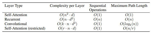 - 훈련 속도: Transformer는 순환 층이나 합성곱 층 기반 아키텍처보다 훈련 속도가 훨씬 빠릅니다.