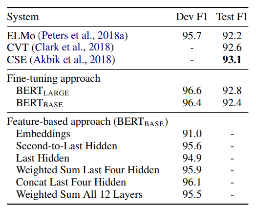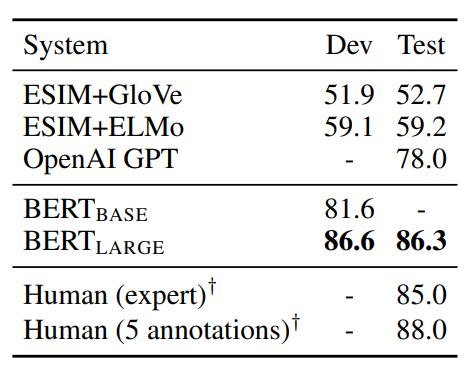 - BERTLARGE가 최신 방법들과 경쟁력 있는 성능 보임