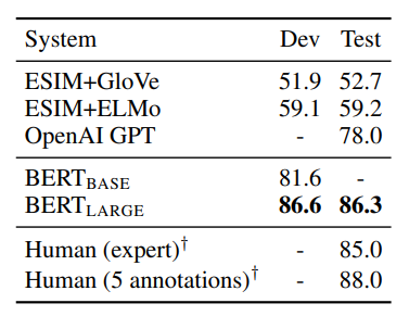 - 저자들의 기준선 시스템(ESIM+ELMo)보다 27.1% 향상