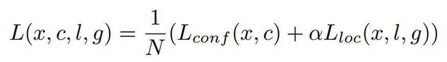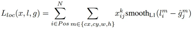Lloc 식: 위 식에서 N은 매칭된 Default Bounding Boxes의 개수이며, 가중치 α는 1의 값을 갖습니다.