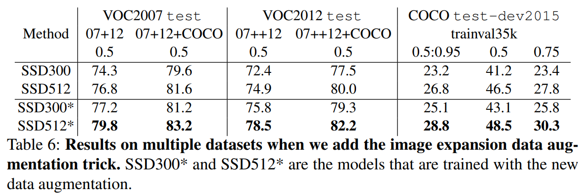 SSD300와 SSD512는 새로운 데이터 증강으로 훈련된 모델