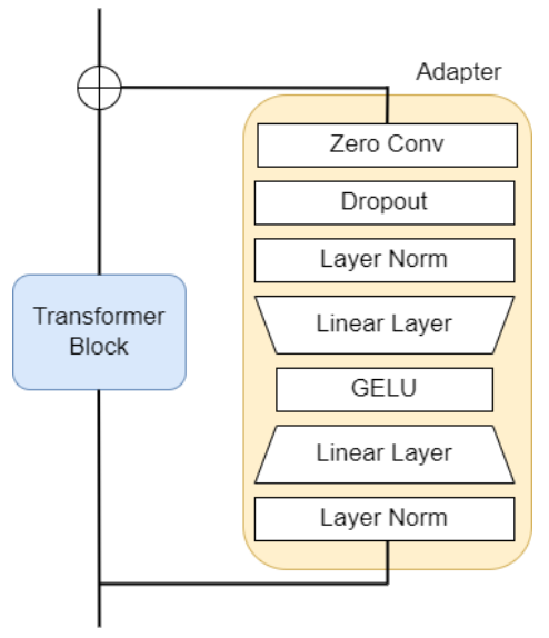- Zero convolution 어댑터 구조
