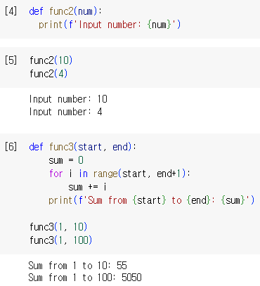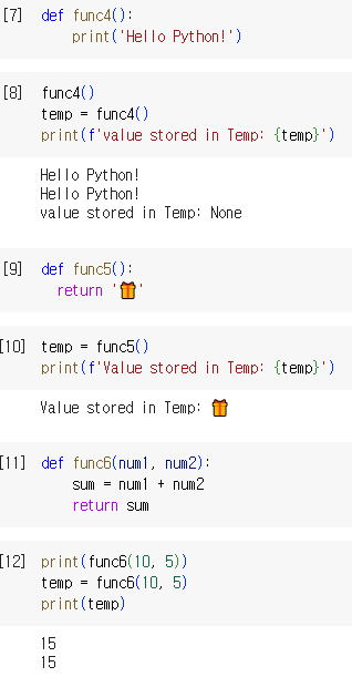 - 특정 작업을 수행하고, 결과는 화면에 출력하거나 다른 변수에 저장하는 방식으로 활용됩니다.