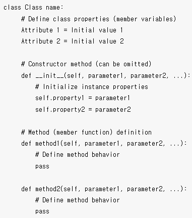 - Class: Class is a template or blueprint for creating objects. It defines the common attributes and behaviors of objects and is used to create objects. For instance, a "car" class can define properties (color, speed) and methods (drive, stop) that all car objects would have.