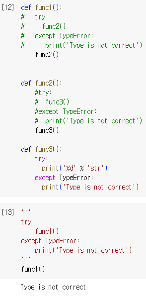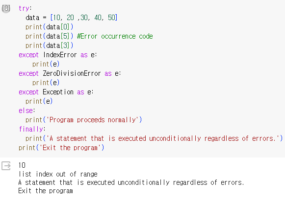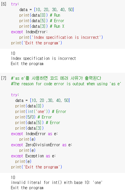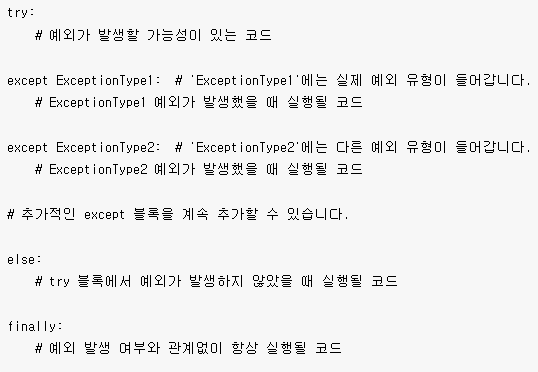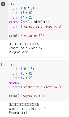 'except' 뒤에 오류 코드를 넣지 않아도 예외 처리가 작동합니다.