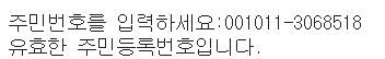- 결과값이 마지막 주민등록번호와 일치하면 유효한 주민번호