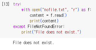 When working with files in Python, various errors can occur, such as the file not existing or permission issues. To handle these errors gracefully, user can use try-except blocks.