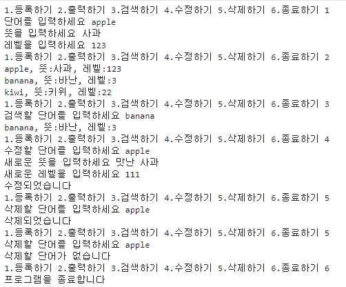 menu = int(input('1.등록하기 2.출력하기 3.검색하기 4.수정하기 5.삭제하기 6.종료하기'))