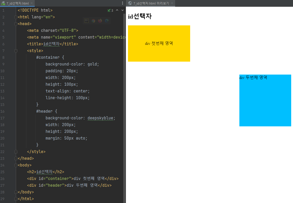HTML 요소 내부셍 style 속성을 사용하여 적용하는 방법</p>