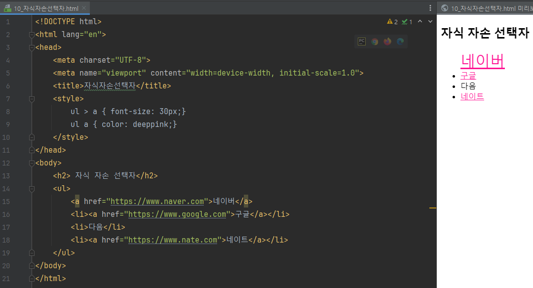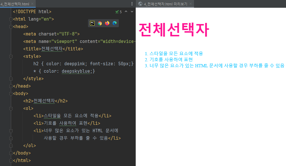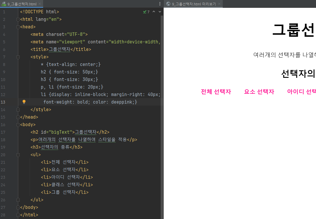 <p>여러개의 선택자를 나열하여 스타일을 적용</p>