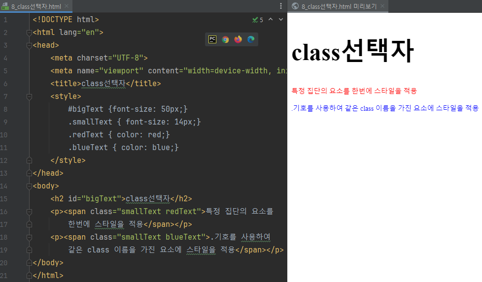 같은 class 이름을 가진 요소에 스타일을 적용</span></p>