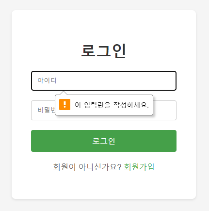 입력을 하지 않고 로그인을 누르면 아래와 같은 오류가 발생합니다
